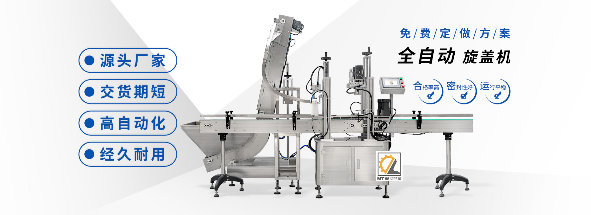 邁特威自動化設備(天津)有限公司坐落于素有京津明珠之稱的天津·武清區(qū),是國家高新技術企業(yè),專注生產(chǎn)、研發(fā)、銷售全自動灌裝機、旋蓋機、封口機、貼標機等系列產(chǎn)品,立足京津冀、服務全國,遠銷海內(nèi)外,團隊由行業(yè)高技術人士組成,為國內(nèi)外食品、日化、糧油、醫(yī)藥等企業(yè)提供滿意的包裝解決方案。 查看詳情